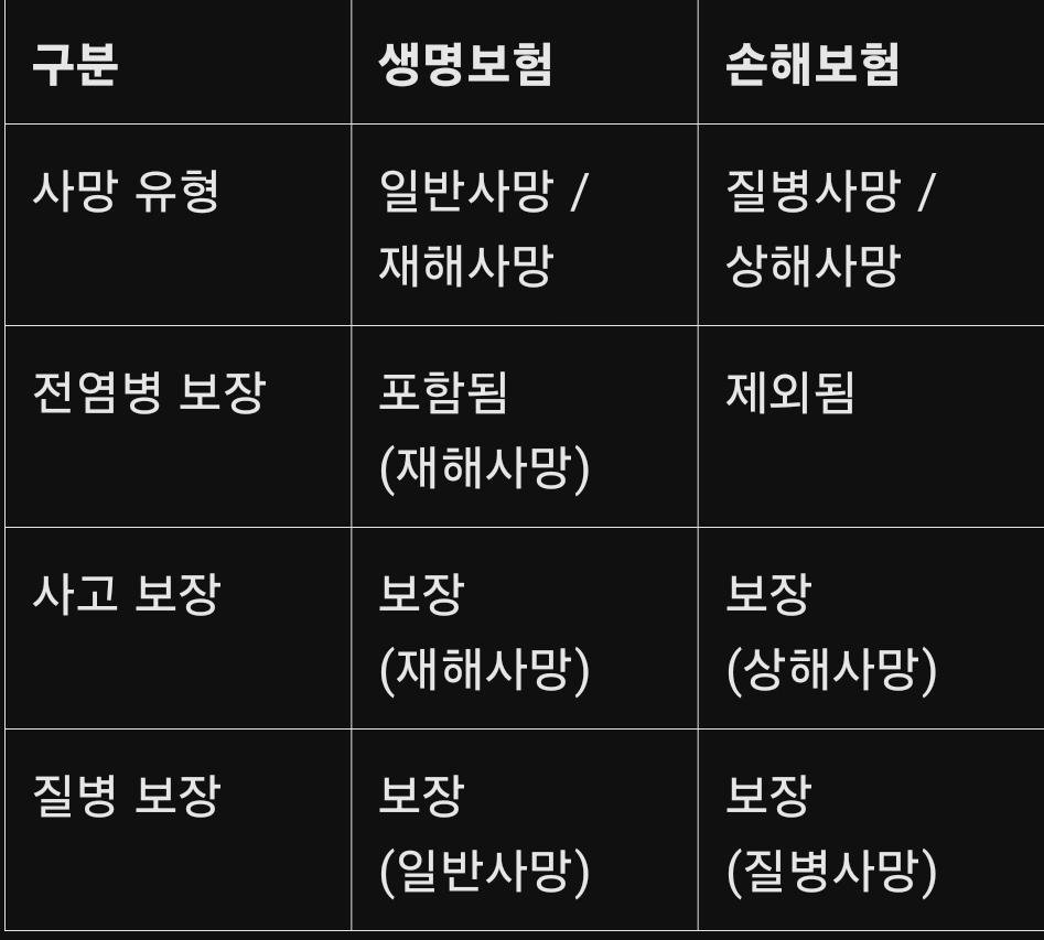 "사망은 그냥 사망 아닌가?" 싶지만, 보험사 입장에서는 사망 원인에 따라 보험금 지급 여부가 달라집니다. 이 글에서는 생명보험과 손해보험에서 말하는 사망 종류 차이를 쉽고 간단하게 정리해드릴게요.