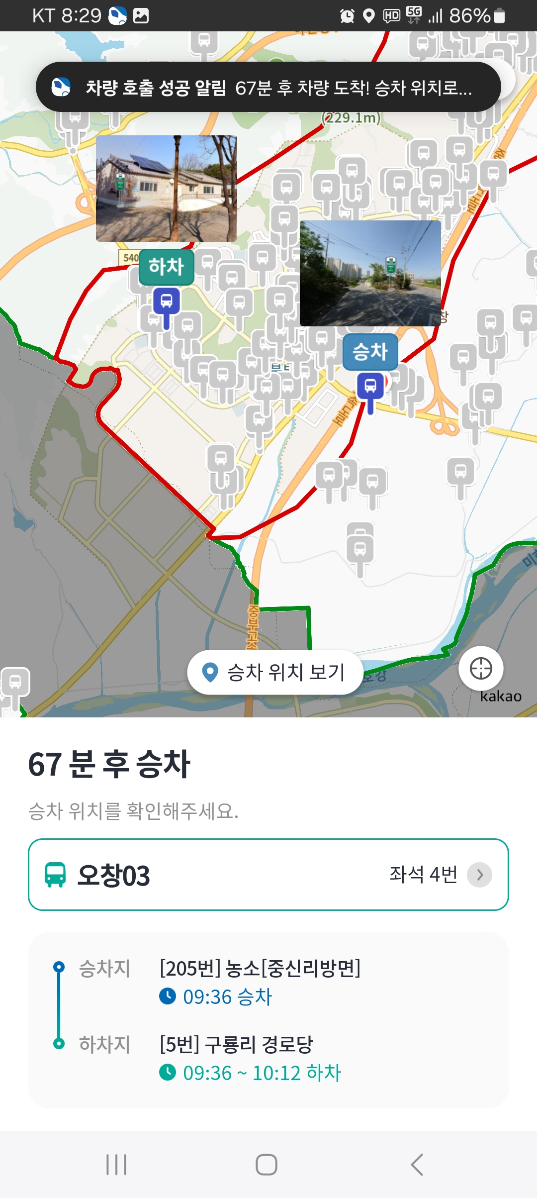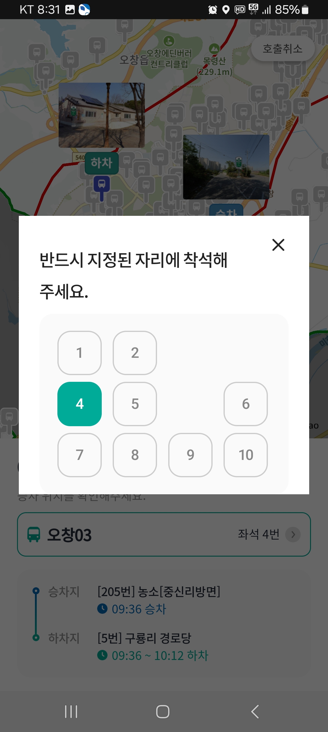7. 콜택시와 비슷하게 가까운 위치에 콜버스가 있다면 바로 잡히고 없다면 출발, 도착지를 바꿔 줍니다