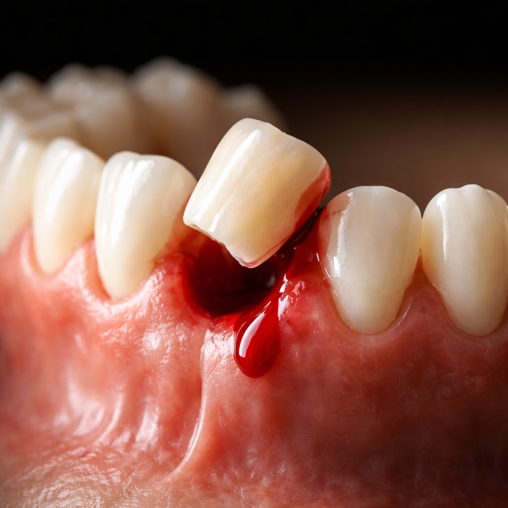 앞니가 갑자기 빠지는 꿈은 가족과의 관계 변화나 걱정거리가 생길 가능성을 암시한다.