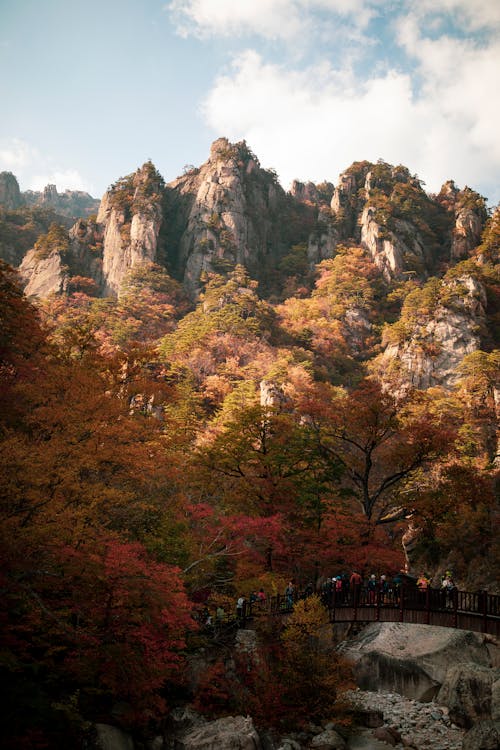 설악산: 강원도에 위치한 설악산은 한국에서 가장 먼저 단풍이 시작되는 곳 중 하나로, 10월 초부터 중순까지가 절정기입니다. 설악산의 가파른 봉우리와 단풍의 화려한 색조는 매년 수많은 사람들을 매료시킵니다.